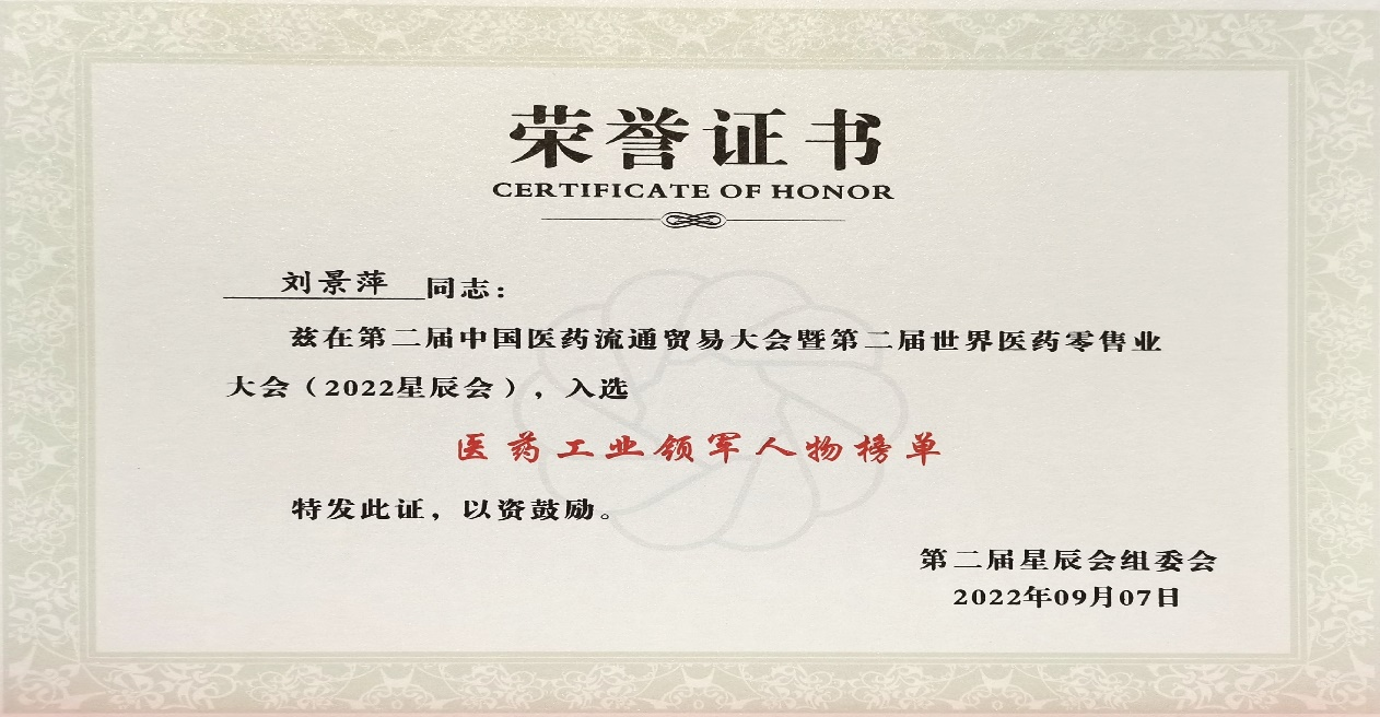 本次星辰会期间,z6mg·人生就是博斩获颇丰,获得多项行业奖项及荣誉。在开幕式上,刘景萍董事长荣获“医药工业领军人物”称号。